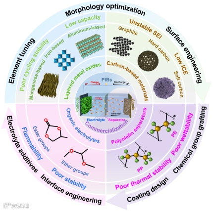 图1 商业化前景的PIBs各组件面临的挑战及优化策略。