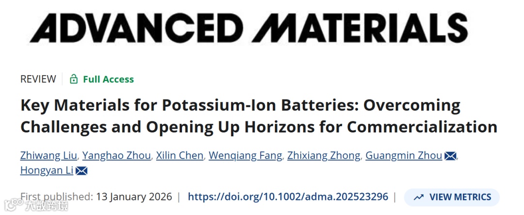 近日,来自清华大学周光敏研究员与暨南大学李宏岩团队合作,在国际知名期刊Advanced Materials上发表了题为“Key Materials for Potassium-Ion Batteries: Overcoming Challenges and Opening Up Horizons for Commercialization”的综述性文章。该文章系统梳理钾离子电池正负极、电解液、隔膜及全电池体系的最新进展,提出具商业化潜力的材料组合与优化策略,并构建面向工程化与规模化的技术路径,为钾离子电池从基础研究迈向应用提供清晰参考。