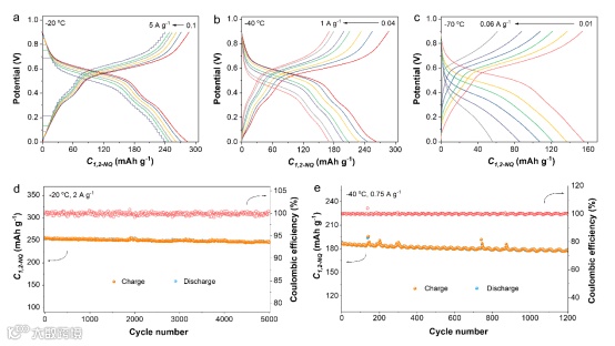 要点三:萘醌正极搭配抗冻电解液实现低温平稳运行