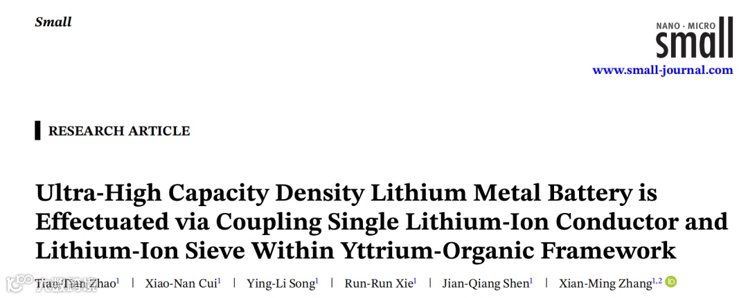 通过在钇有机框架内耦合单锂离子导体与锂离子筛实现超高容量密度锂金属电池