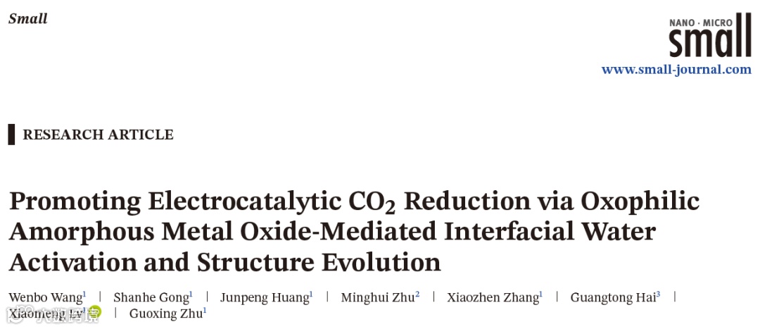 王文搏、吕晓萌等人,Small:通过亲氧无定形金属氧化物介导的界面水活化与结构演变促进电催化CO2还原