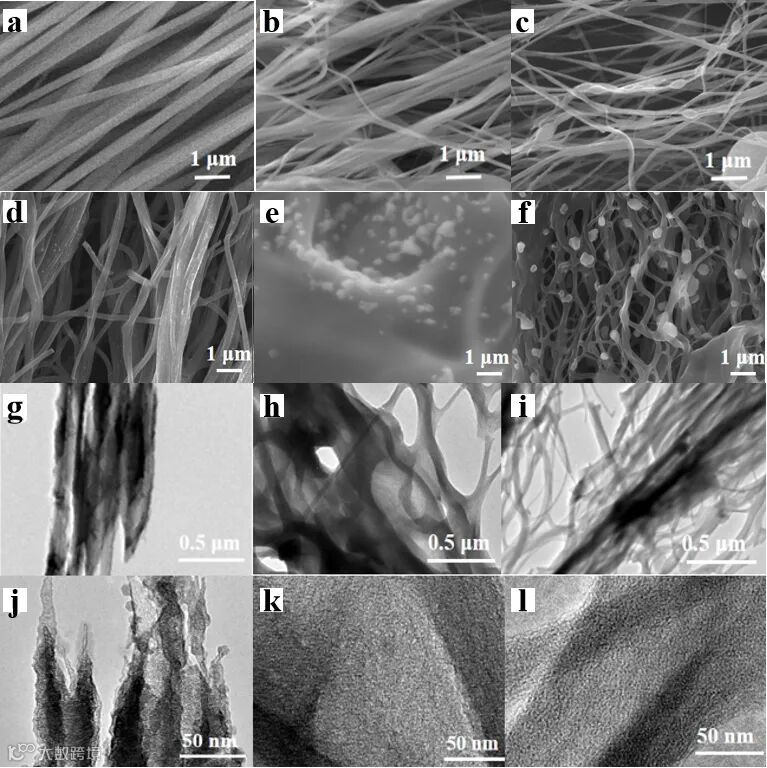 图2展示了PAN/SCD-x材料的结构转化,随着SCD含量的增多,电纺纤维直径减小,串珠状结构增多,取向性下降。碳化后,PAN/SCD-0.2基本保持取向纤维结构,PAN/SCD-0.6形成二维膜状结构,而PAN/SCD-0.8则呈现纤维与少量膜共存形貌。SCD提高溶液导电性但破坏分子链缠结,导致纤维细化与成珠倾向;碳化过程中含义合适SCD量的纤维熔融重组为膜状结构。通过调控SCD含量和纤维取向,在碳化过程中实现纤维的横向融合与重组,形成连续二维片层结构,显著提升比表面积,提供更多电荷存储位点。