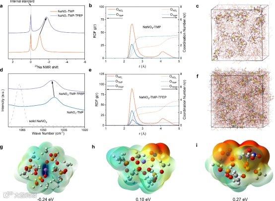 图3. TFEP对钠离子溶剂化结构及其还原稳定性的调控。