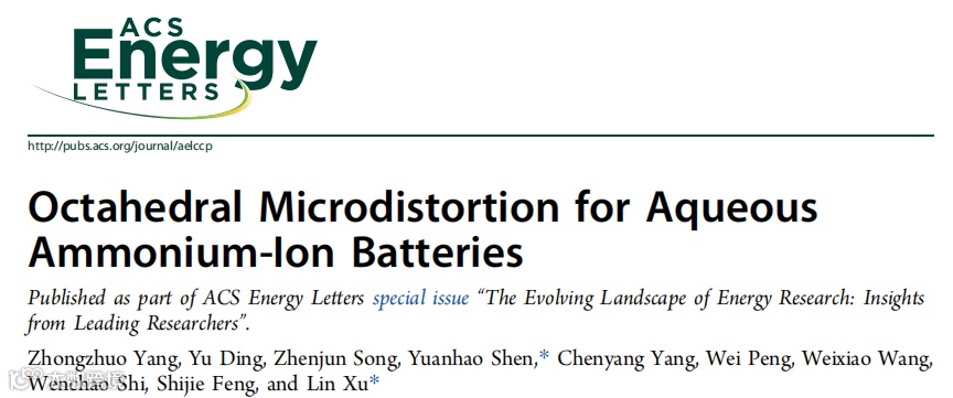 近日,武汉理工大学与河南大学合作团队在ACS Energy Letters上发表了题为 “Octahedral Micro-Distortion for Aqueous Ammonium-Ion Batteries” 的研究论文。该研究提出一种全新的电子结构调控方案:通过引入高电荷密度的Al3+调节V t2g轨道占据,诱导VO6八面体产生轻微的局域微畸变。这种微畸变不仅改变局部配位环境,还形成类似“内建应力缓冲层”式的结构单元,能够在NH4+插入与脱出过程中主动吸收内部应力,从而显著抑制层状结构通常出现的晶格呼吸。与此同时,电子结构的重新分布也提升了材料本征电子传导能力,并有效降低NH4+的扩散能垒,实现双重性能提升。