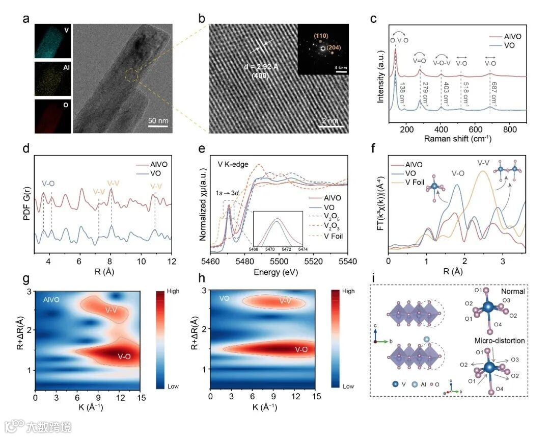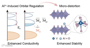 引入Al3+后,V 3d V t2g(尤其是3dxy)轨道占据发生变化,局域对称性下降,触发VO6八面体轻微扭曲。 -