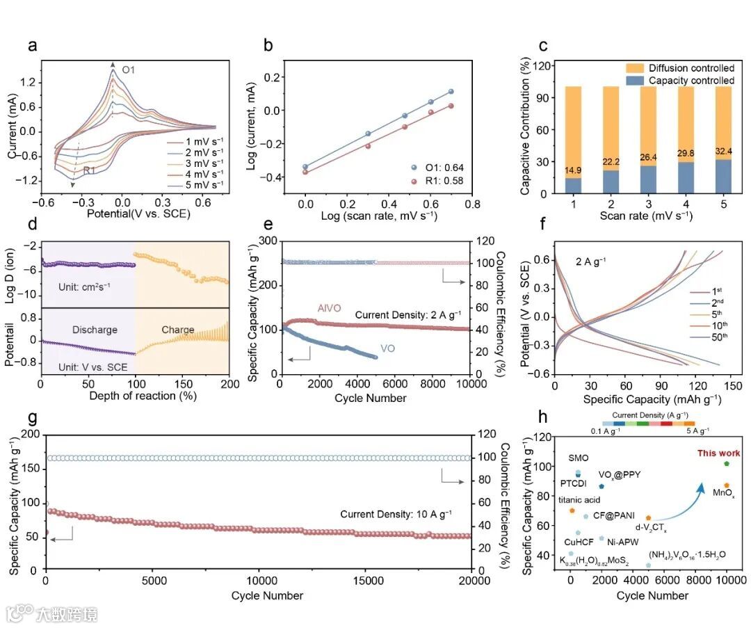 要点二:电化学动力学与性能表现优异,快速NH4+存储机制主导反应过程