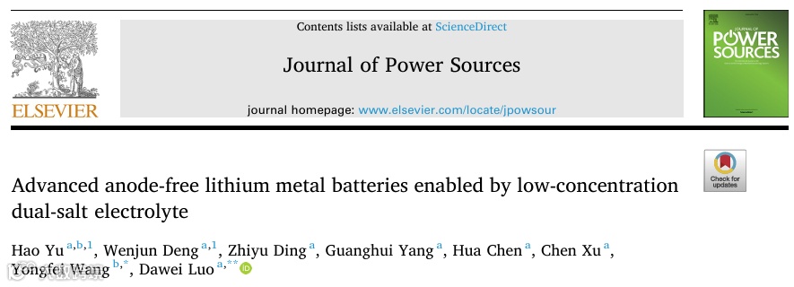 低浓度双盐电解液助力先进无负极锂金属电池