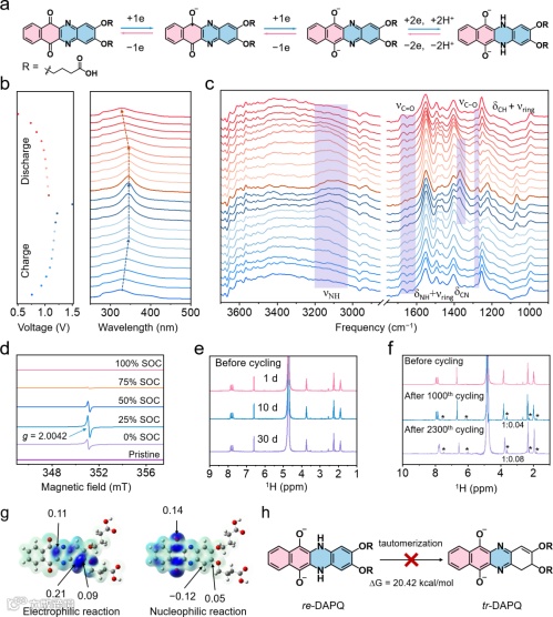 图5. DAPQ分子的氧化还原机理和稳定性研究。