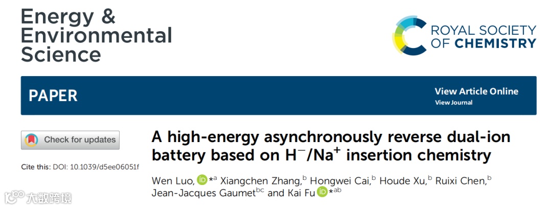 基于H−/Na+嵌入化学的高能量异步逆向双离子电池