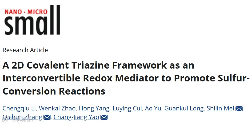 2D共价三嗪框架作为可逆氧化还原介质促进硫转化反应研究