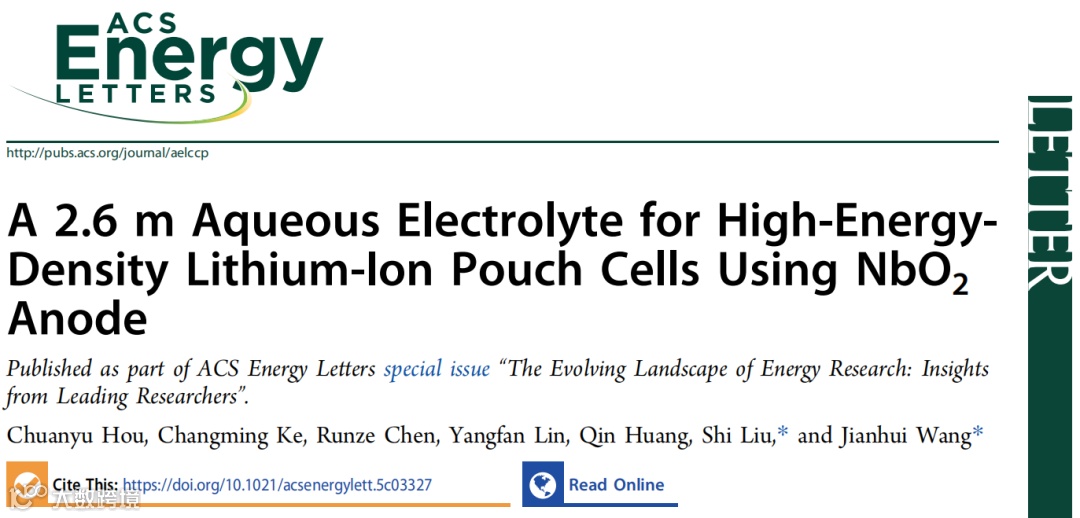 随着电动汽车与大规模储能产业发展,市场对电池提出了"性能、成本、安全"多重严苛要求。商用非水系锂离子电池虽占主导,但其电解液易燃有毒、生产环境湿度要求严苛、能耗高的痼疾日益凸显。相比之下,水系锂离子电池凭借本质安全、环境友好、生产环境相对温和等优势,被视为下一代潜力储能方案。然而,水系电池商业化长期受困于两大痛点:一是水的电化学稳定窗口窄(约1.23 V),负极低电位区易发生析氢反应;二是缺乏水环境中结构稳定且高比容量的负极材料。这致使现有水系电池能量密度不足非水系电池的三分之一。铌基氧化物(如NbO₂)对水环境稳定、体积应变小、理论比容量高(>300 mAh g⁻¹)具有超越常规钛基负极材料的潜力。但其工作电位(1.0-2.0 V vs. Li⁺/Li)超出传统水系电解液稳定窗口。此前学界多采用"盐包水"高浓度电解液策略,虽能抑制水分解,却依赖大量双三氟甲基磺酰亚胺锂盐(LiTFSI),成本高昂。如何在降低锂盐浓度前提下实现宽电压窗口与高比能电极兼容,成为水系锂电产业化的关键难题。