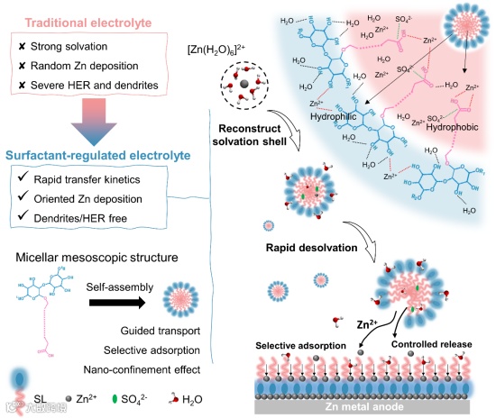 表面活性剂介导的介观相电解质实现高稳定锌金属负极