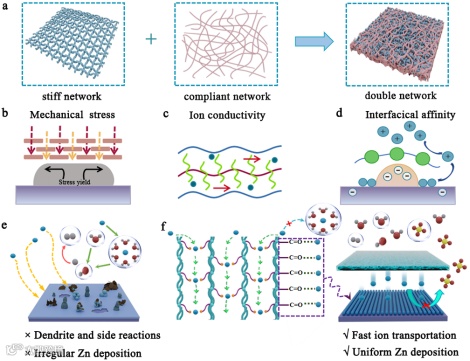具有双网络结构的新型多功能聚合物界面层用于保护水系锌负极