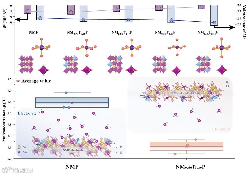 图 1:电子-晶格耦合调制策略通过p-d杂化减少Mn3+轨道简并,并通过柔性TiO6八面体实现应变均质化,实现可控的Jahn-Teller畸变调控和增强的NaMnPO4循环稳定性
