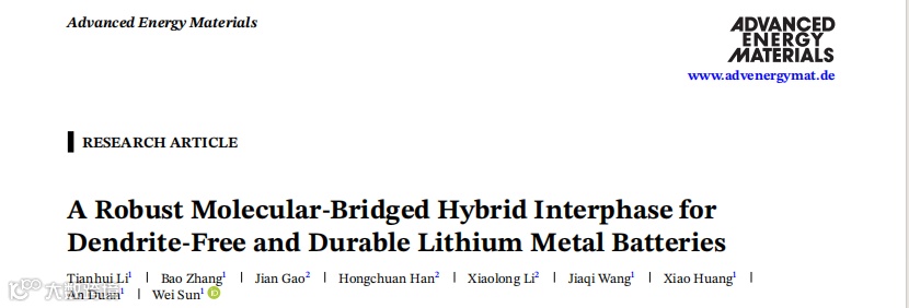 分子桥接杂化界面相用于无枝晶、长寿命的锂金属电池