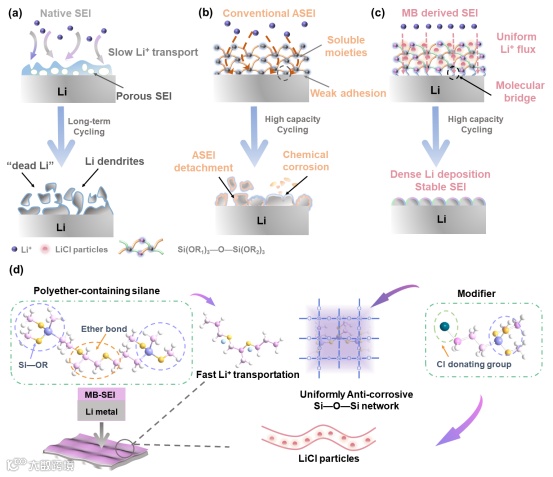 构建坚固的SEI需兼具化学钝化能力与优异的界面粘附性,以确保其在电池运行及存储过程中保持结构完整。此外,所设计的人工SEI还应具有良好的机械强度和快速的锂离子传输能力,从而抑制金属锂的粉化与促进锂的均匀沉积。