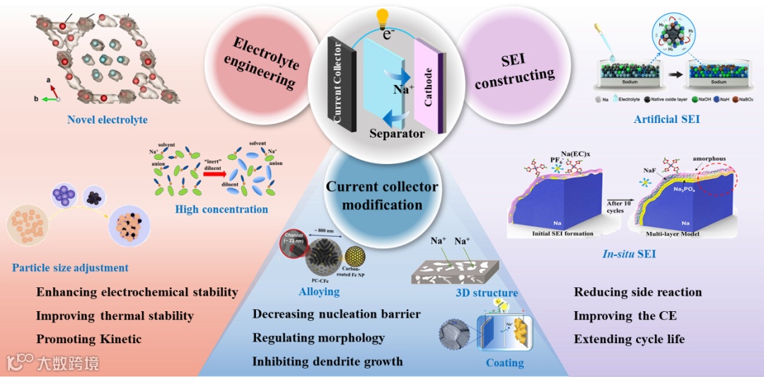 图3. 电解质工程、SEI工程和集流工程的作用。