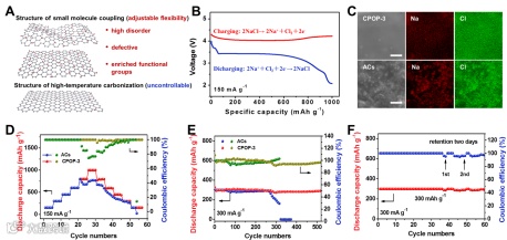 图5.合成的有机功能材料在Na/Cl2电池的应用