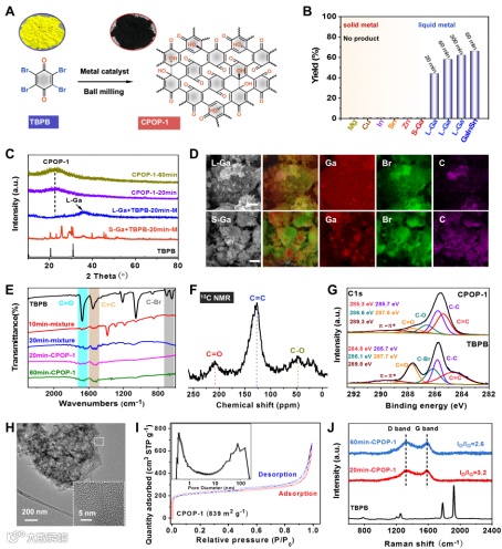 研究通过机械球磨辅助,在较低能量输入(270 rad/min)下实现液态金属与反应物的均匀混合,构建富电子反应环境,显著提升传质效率与原子利用率。同时,该体系摒弃了传统有机溶剂的使用,转而以机械能驱动反应,替代了传统热活化方式。