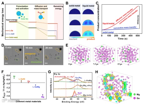 图1.固-液金属反应界面及机械辅助液金属催化体系的示意图
