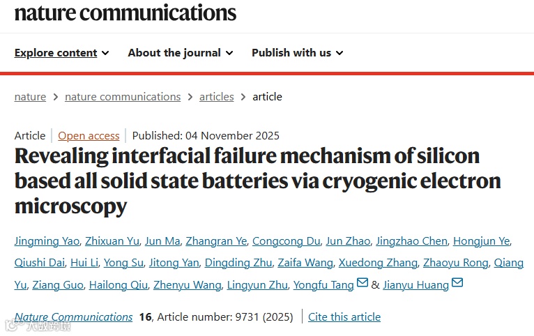 利用冷冻电子显微镜揭示硅基全固态电池的界面失效机制