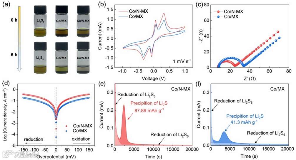 图 3. 催化剂对多硫化物的吸附能力与液-固转化动力学评估