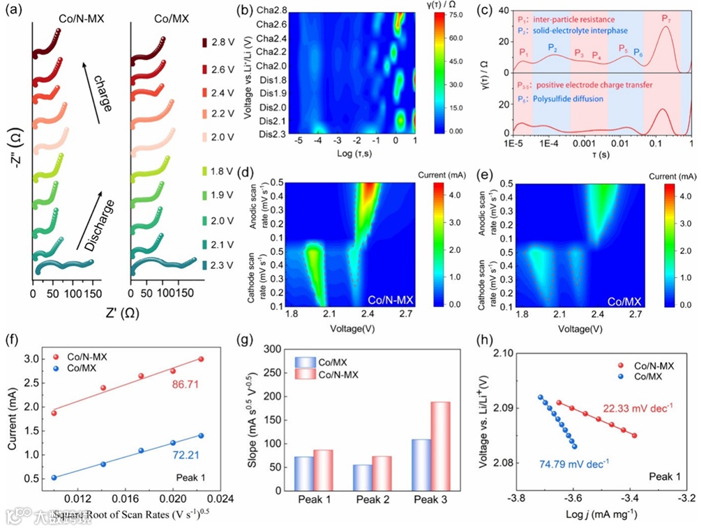 图 4. 锂硫电池的原位电化学阻抗行为与反应扩散动力学分析