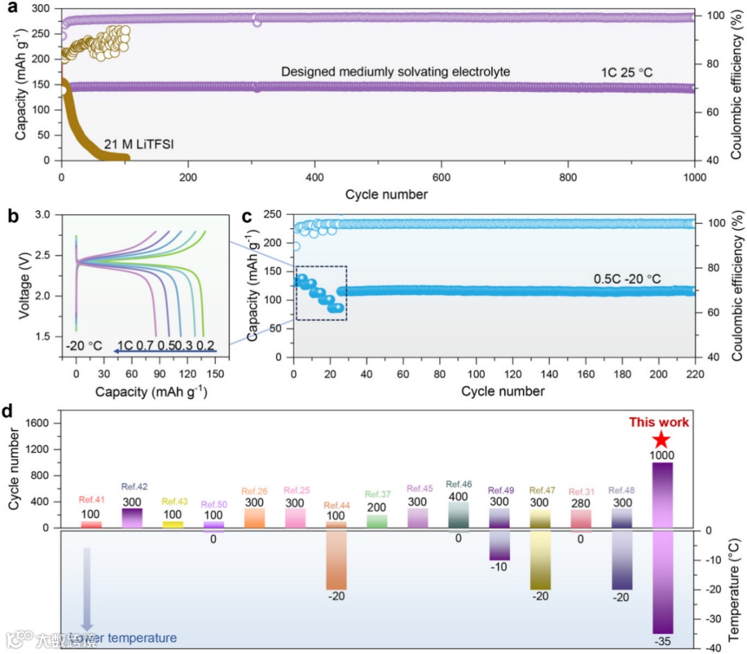 中等溶剂化结构电解液化学设计的高压低温水系电池