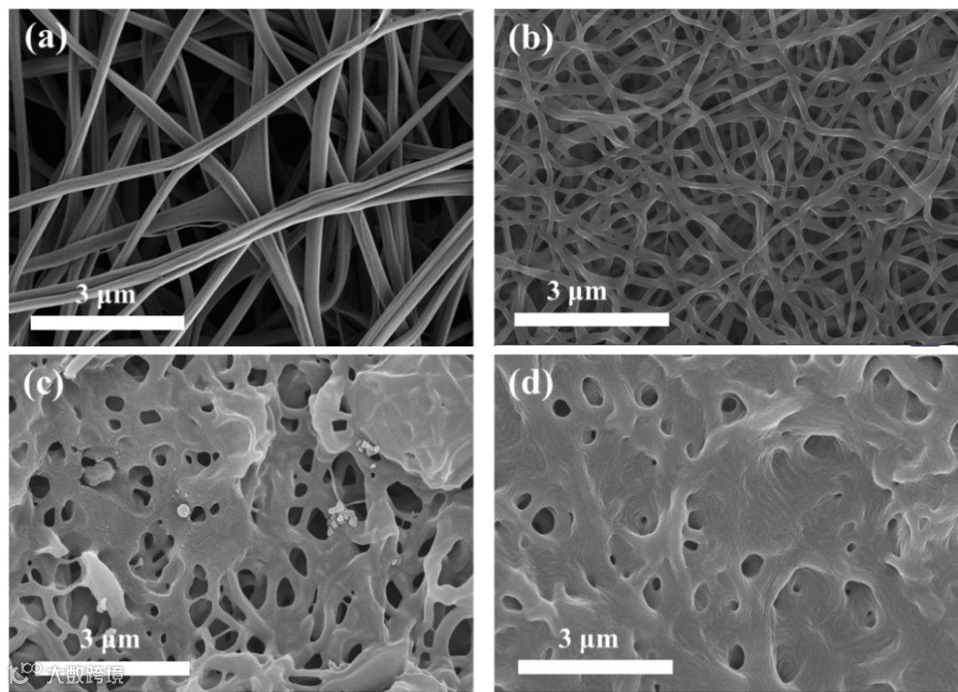图2. (a) 3D-PANC-5%, (b) 3D-PANC-10%, (c) 3D-PANC-15%, (d) 3D-PANC-20%的扫描电子显微镜图像。