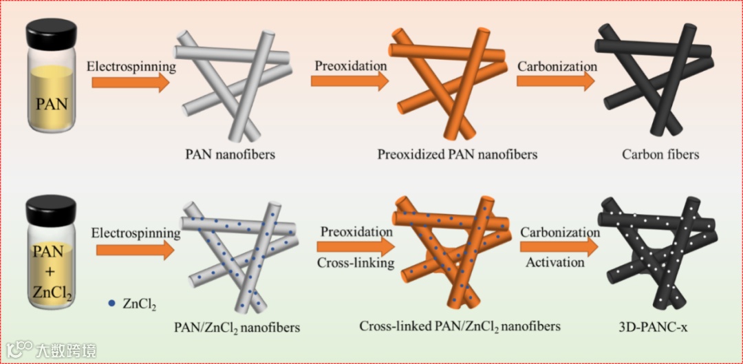 图1. 3D-PANC-x材料的制备过程示意图。