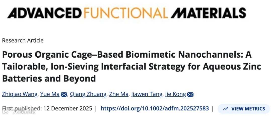 基于多孔有机笼的仿生纳米通道:一种用于水性锌电池和其他的可定制的离子筛分界面策略