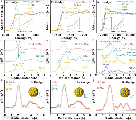 图 4. NiFeMo 纳米合金催化剂的XAS分析,揭示化学状态和局部原子结构。