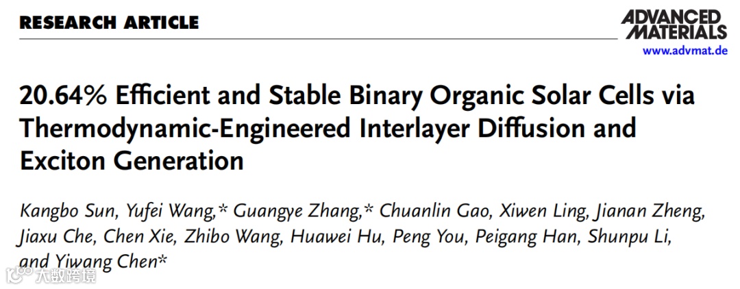 通过热力学工程化的层间扩散和激子产生实现20.64%且稳定的二元有机太阳能电池