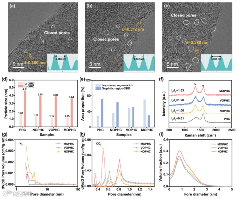 本文通过可控的多步预氧化策略实现了具有平衡石墨相和无序结构的最优化微观结构:扩大的层间距(0.388 nm),最小化的比表面积(3.34 m2/g),大量的封闭孔隙率(30.29%)。
