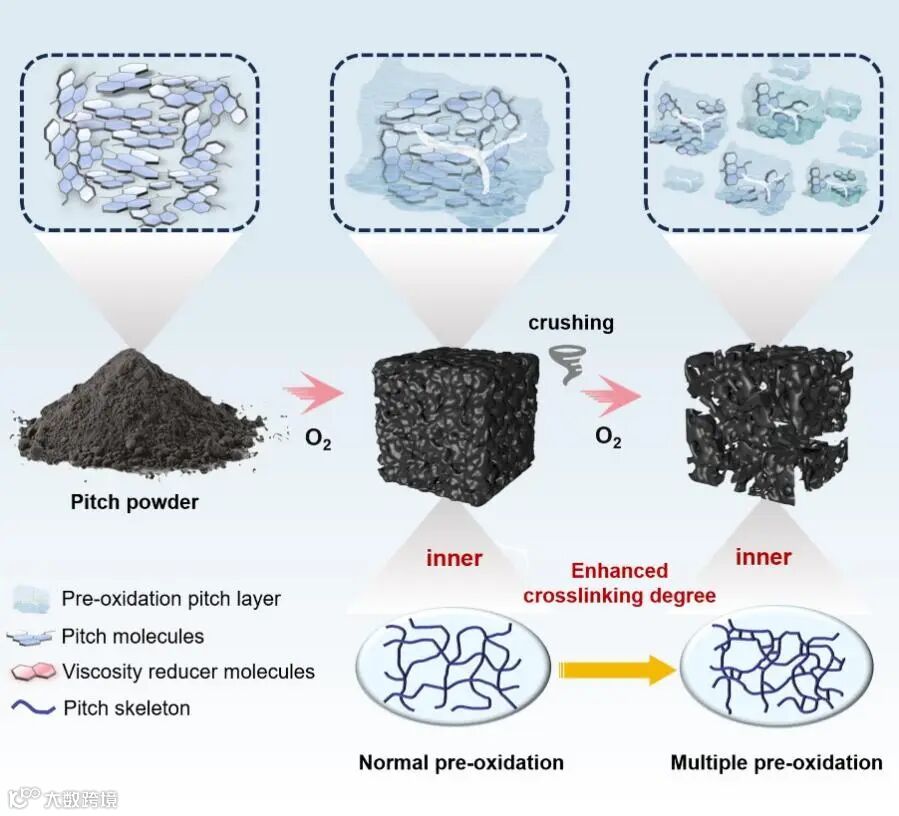 本文通过逐步预氧化/机械破碎策略,动态去除阻碍表面氧化层和缩小颗粒尺寸来增强界面动力学,该方法克服了传统预氧化工艺固有的传质限制,实现了沥青的均匀预氧化。