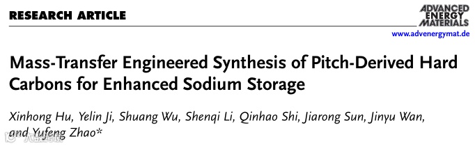 “Mass-Transfer Engineered Synthesis of Pitch-Derived Hard Carbons for Enhanced Sodium Storage”