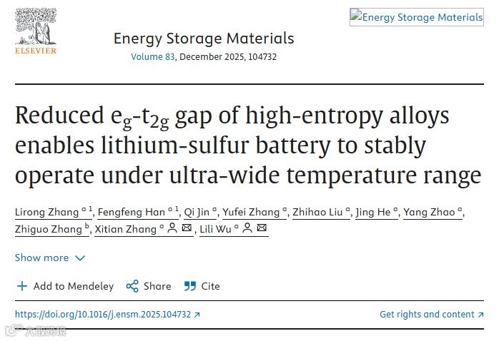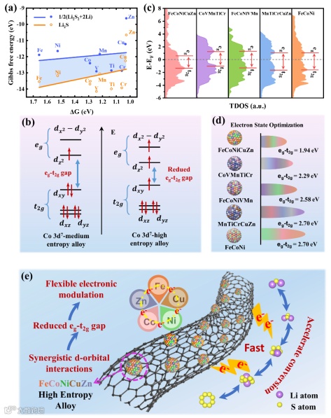 高熵合金的eg-t2g能隙减小使锂硫电池能够在超宽温度范围内稳定运行