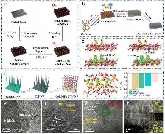 要点:分析了LDH与硫化物、磷化物等构建异质结在促进电荷转移、优化反应路径与提升抗腐蚀性能方面的协同效应。