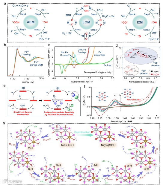 多组原位表征与理论计算联手,揭开了NiFe-LDH高活性的秘密:Fe是催化活性的核心,而Ni位点则扮演着驱动电子转移的关键角色,二者协同极大地促进了O-O键的形成。