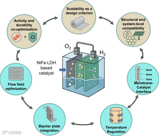 强调了通过活性、稳定性与耐蚀性的协同优化,以及材料与电解槽系统的匹配设计,是实现产业化应用的关键。