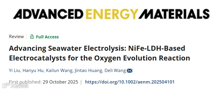 近日,来自华中科技大学大学的王得丽教授在国际知名期刊Advanced Energy Materials上发表题为“Advancing Seawater Electrolysis: NiFe-LDH-Based Electrocatalysts for the Oxygen Evolution Reaction”的综述文章。该综述文章综述系统性地梳理了NiFe-LDH基催化剂用于海水析氧反应的研究全貌以及工业应用的设计准则。