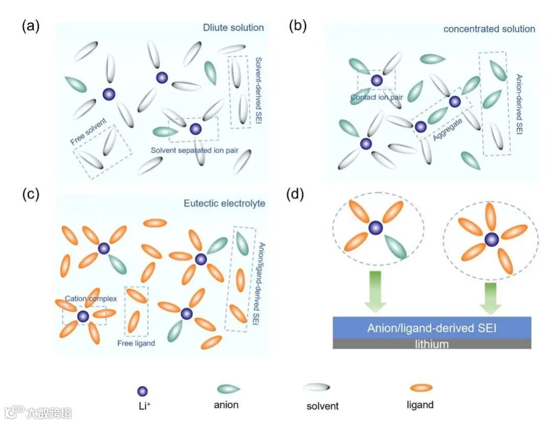 图2:共晶电解质溶剂化结构与其他电解质对比