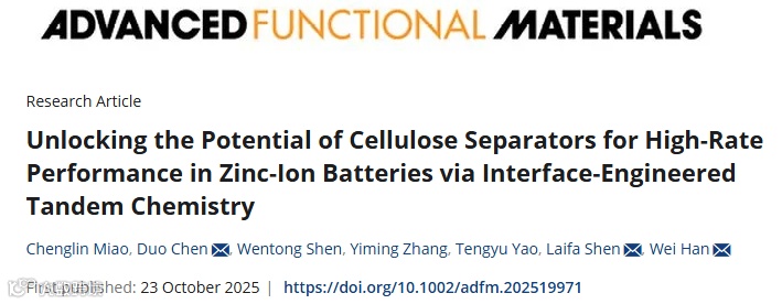 界面串联化学赋能纤维素隔膜实现高倍率长寿命锌电池