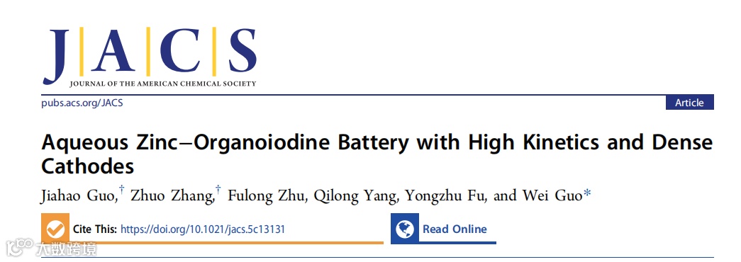近日,郑州大学郭玮教授团队,在国际知名期刊Journal of the American Chemical Society上发表题为“Aqueous Zinc–Organoiodine Battery with High Kinetics and Dense Cathodes”的研究型文章。该文章通过分子间电荷转移相互作用,实现了无机碘的有机化,提升了有机材料的电子电导率,并通过分子间氢键作用降低了氧化还原中间产物的溶解度,最终实现了高动力学、高面载量的水系锌-有机碘电池。该研究成功搭建了分子工程与实用电化学之间的桥梁,为开发高能量、可持续的储能系统提供了重要见解。