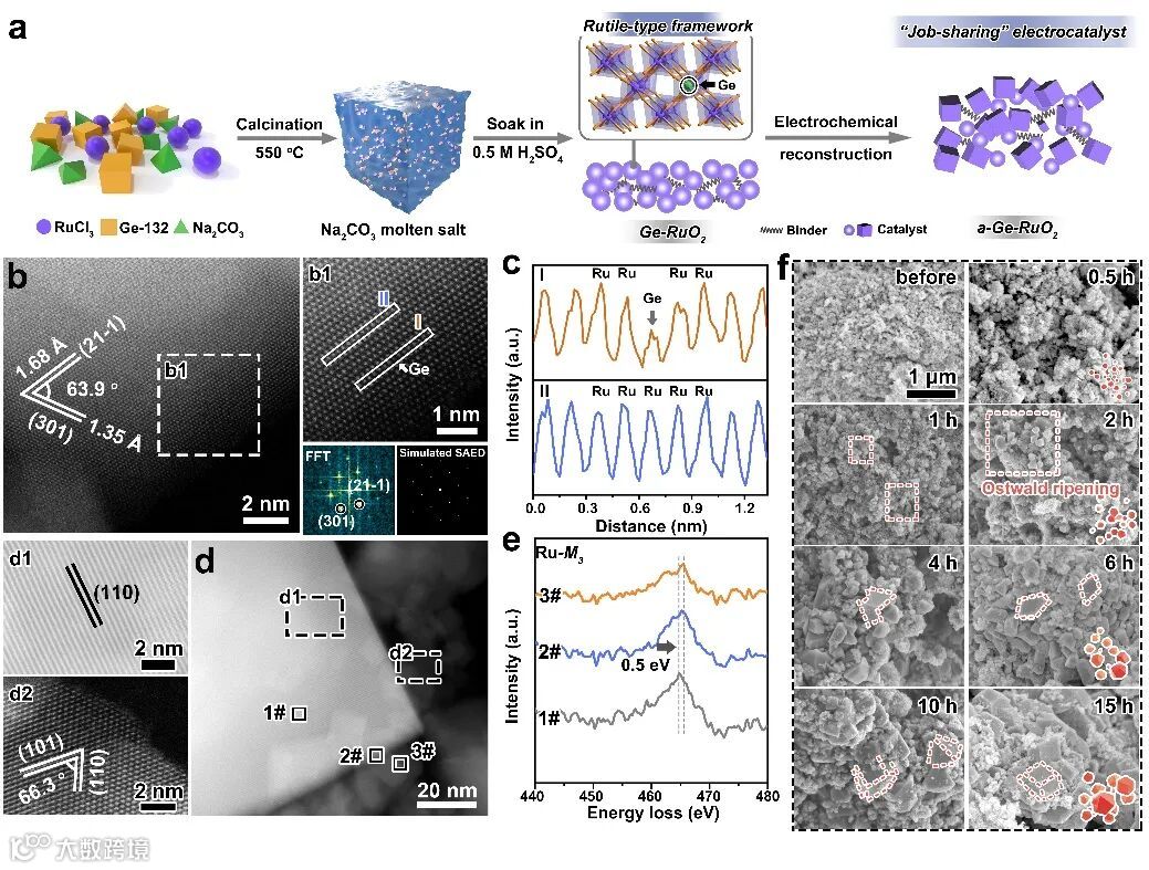 图2. Ge-RuO2与a-Ge-RuO2的合成路线及物理表征。