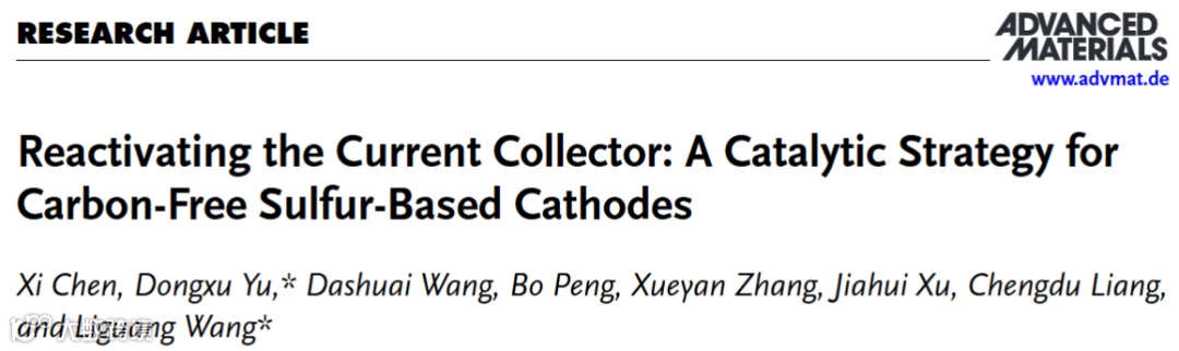 近日,来自浙江大学衢州研究院的于东旭研究员与浙江大学的王利光研究员合作,在国际知名期刊Advanced Materials上发表题为“Reactivating the Current Collector: A Catalytic Strategy for Carbon-Free Sulfur-Based Cathodes”的研究文章。该研究文章提出了一种催化集流体转化策略,用于构建无碳硫基正极。同时通过先进表征与理论计算,进一步揭示了该转化过程的催化机制与结构演变路径。