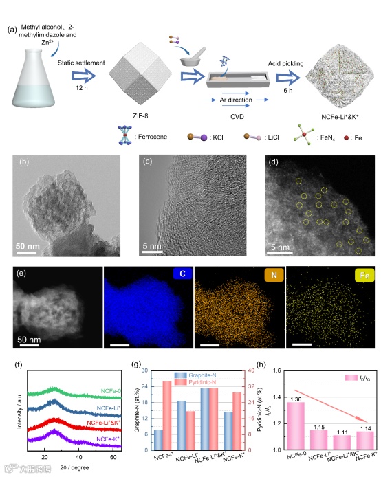 图1. Fe-N-C催化剂的合成路线以及形貌、结构表征。