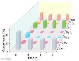 图6. 复杂烃类混合气体中各气体浓度随反应时间变化图。