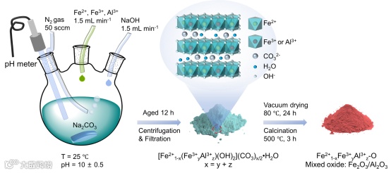图2. 水滑石衍生铁基催化剂的合成示意图。