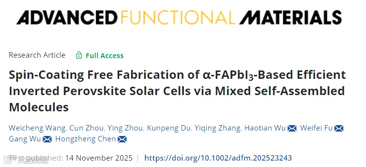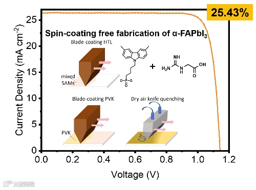 混合自组装分子策略实现高效反型α-FAPbI3钙钛矿电池的无旋涂制备